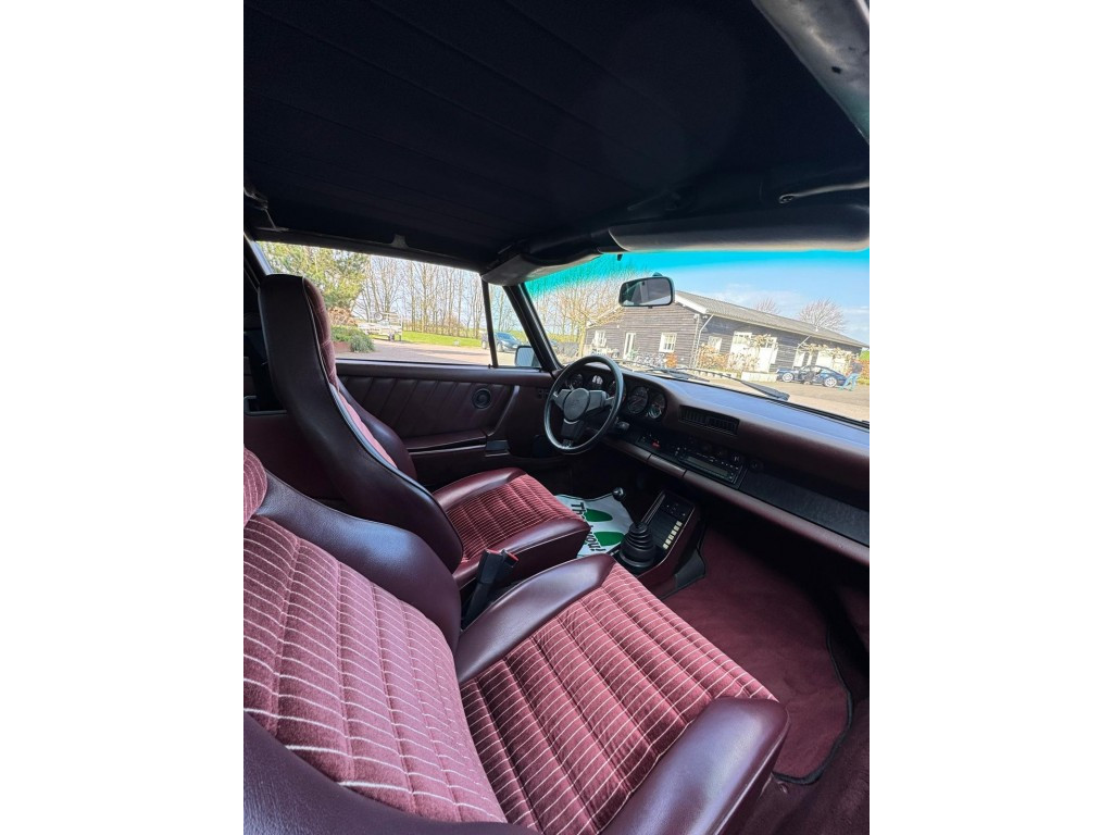Te koop aangeboden een Porsche 911 3.2 Carrera Targa uit 1984, origineel in Zwitserland geleverd en uitgevoerd in het zeer fraaie Rubinrot Metallic. Een bijzondere en stijlvolle kleur die de auto veel uitstraling geeft en zeer goed combineert met het bordeauxrode interieur. Daarnaast staat de auto op Fuchs velgen, wat het geheel compleet maakt. De auto maakt een verzorgde indruk. Lak, carrosserie en interieur ogen netjes en het interieur is goed bewaard gebleven met een mooie, originele uitstraling. Nederlandse registratie is mogelijk.